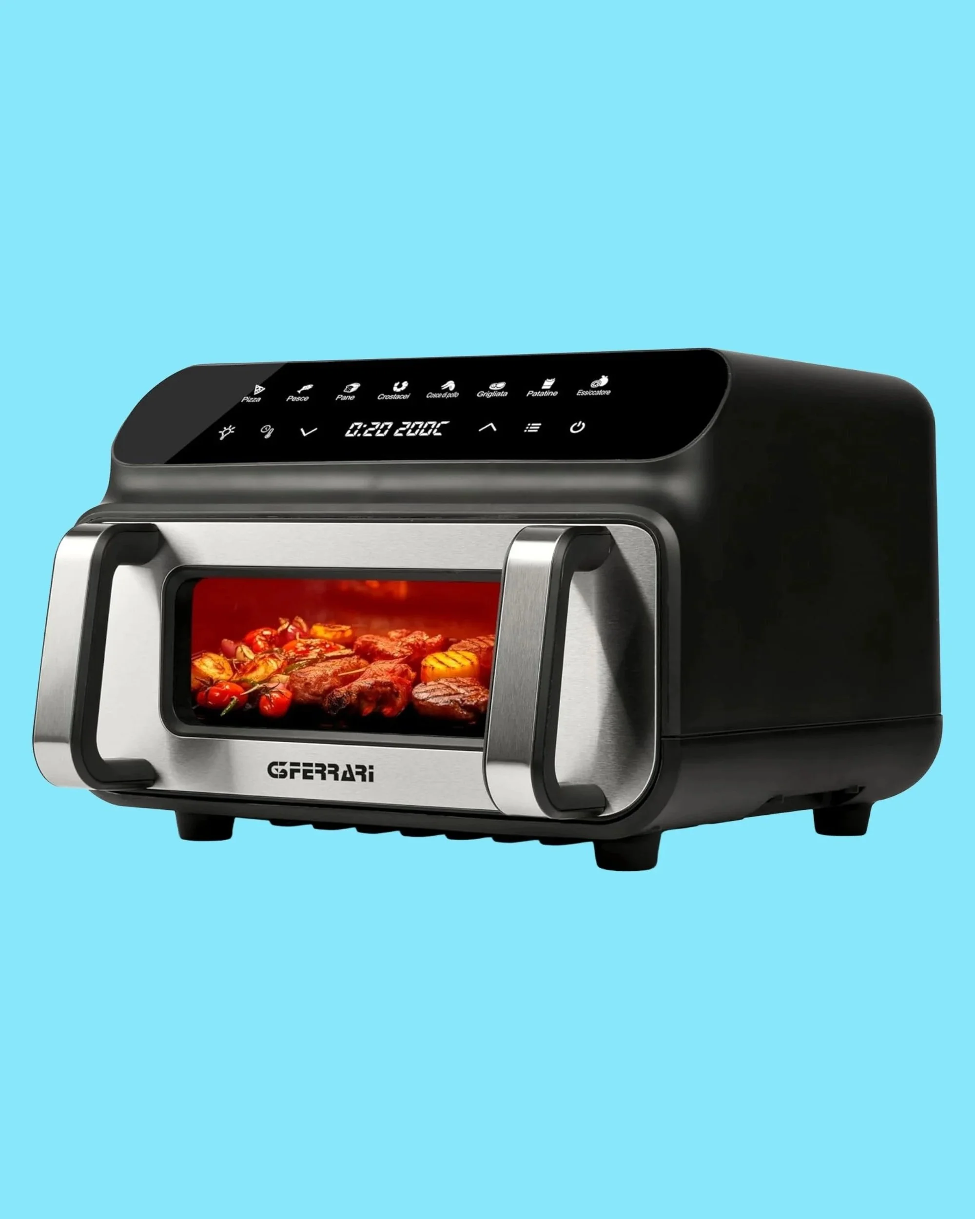 G3 Ferrari è un marchio italiano con una storia lunga nell'elettrodomestico da cucina, e questo Friggisano BBQ è forse il prodotto più originale della loro gamma. Non si limita a friggere ad aria: include una funzione barbecue smokeless che simula la cottura sulla griglia, senza fumo e senza dover uscire sul balcone.