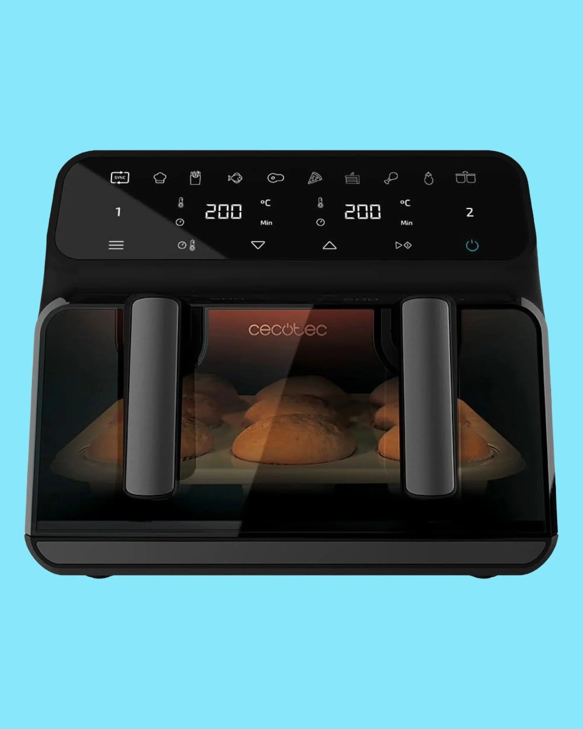Cucina 2 cibi, in 2 modi diversi, entrambi pronti allo stesso tempo! Adatta fino a un pollo da 2 kg o 1,5 kg di patatine in ciascuna zona con una capacità di 5,2 litri