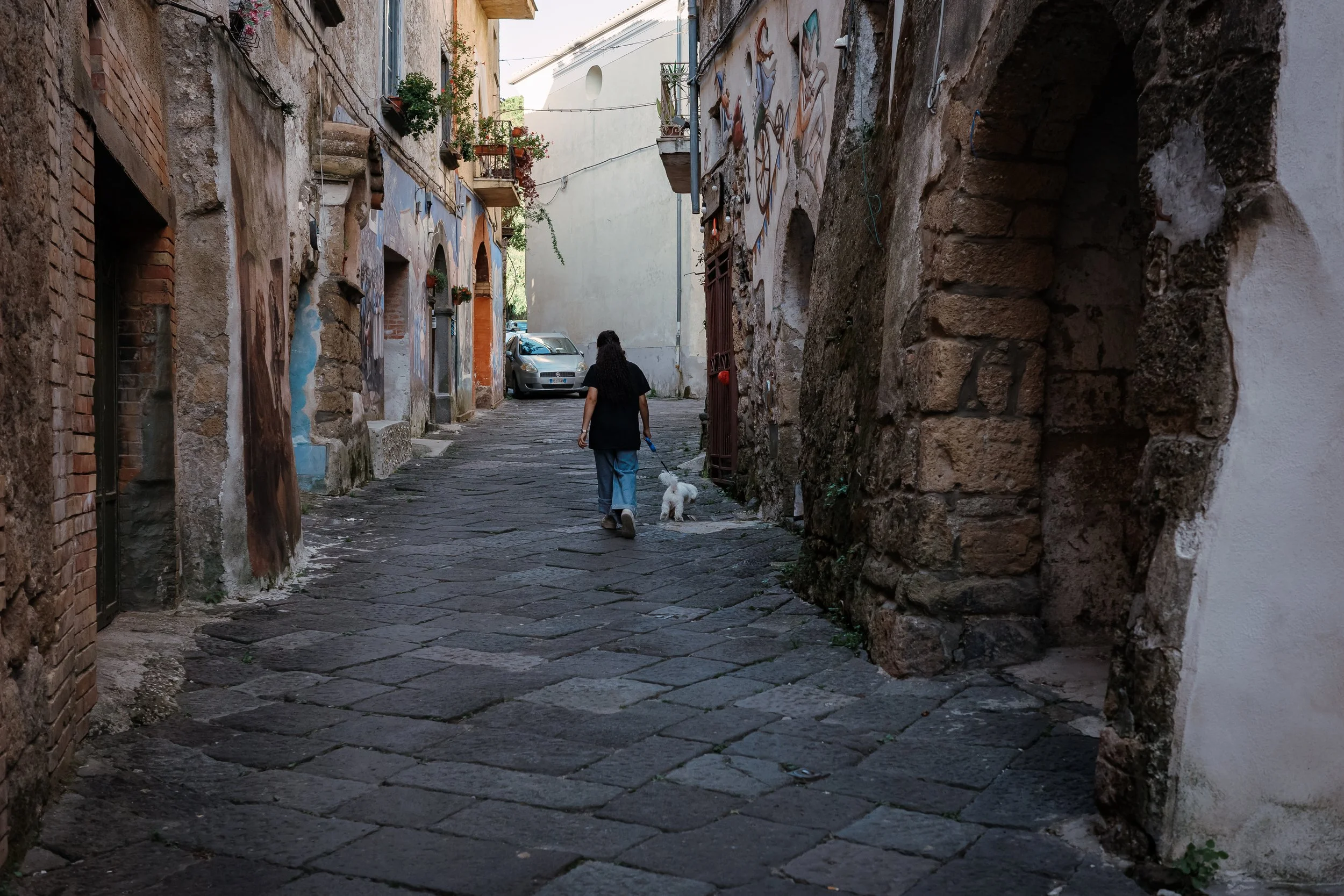 Durante le mie esplorazioni mi sono trovato a Valogno, in provincia di Caserta, un piccolo borgo vicino al mio paese d'origine. La particolarità di questo paesino? È un borghetto arroccato in collina dove da qualche anno le case vengono dipinte con murales da artisti e pittori.